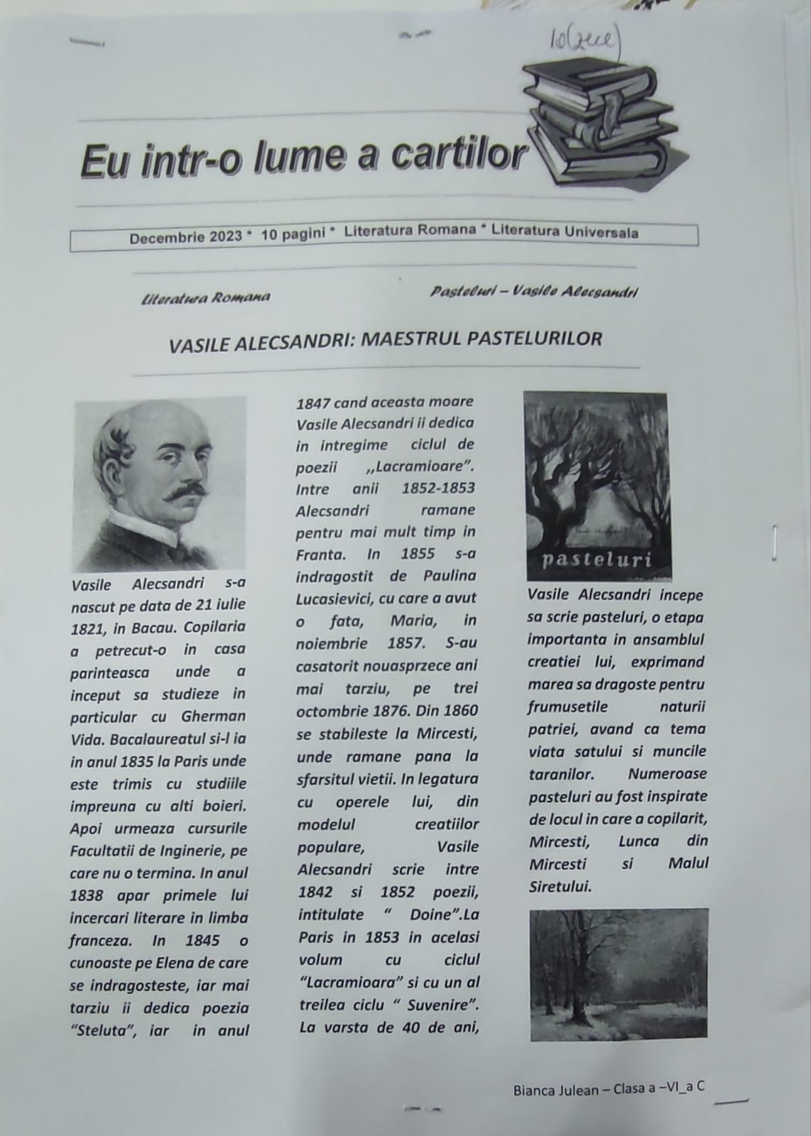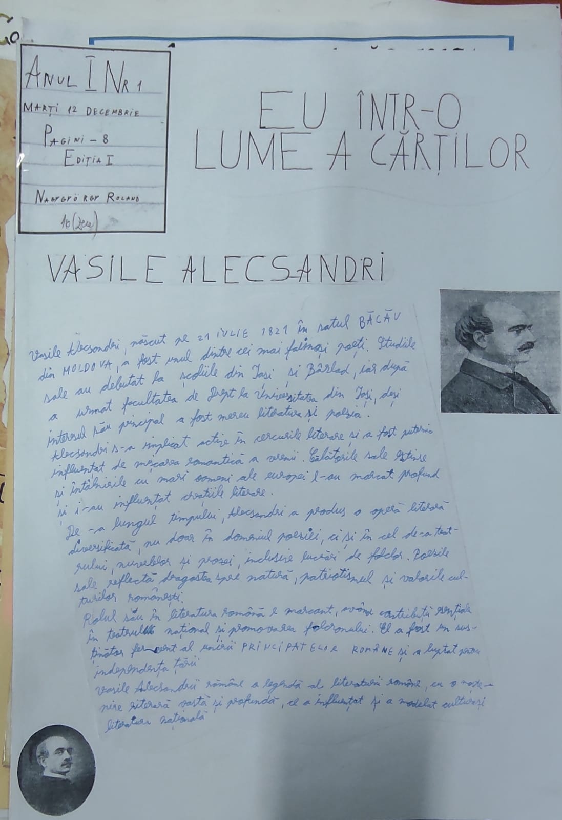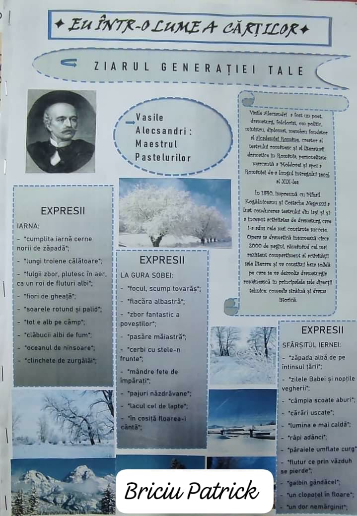 Elevii din clasa a VI-a C din școala noastră au abordat o metodă inovatoare de a explora universul literaturii române și universale. Sub deviza „Eu într-o lume a cărților,” acești tineri entuziaști și talentați au creat fiecare un ziar dedicat explorării operelor unor mari scriitori români și universali, evidențiindu-și creativitatea și pasiunea pentru lectură.